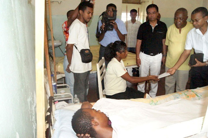 Aussitôt arrivée à Mahajanga, la délégation gouvernementale, composée du ministre de l’Enseignement Supérieur et de la Recherche Supérieur, du ministre de la Communication et du ministre de la Pêche et des Ressources halieutiques, s’est rendue aux chevets des onze (11) étudiants soignés au Centre Hospitalier Universitaire d’Androva pour leur remettre des aides au nom de l’État de Transition. Parmi les (11) blessés, sept (7) ont subi des interventions chirurgicales dès leur admission à l’Hôpital.