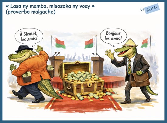 Le spectacle peu reluisant que nous offrent les politiciens depuis des décennies soulignent une réalité : seuls les noms et les photos changent d’un régime à l’autre, mais les mentalités qui sous-tendent les comportements et les pratiques restent les mêmes. Quelquefois, en pire, car les nouveaux venus ont appris comment faire plus vite et plus fort que ceux à qui ils succèdent : comme dit le proverbe malgache, on a souvent une arrivée de crocodile qui suit le départ de l’alligator. Les litanies et dénégations “avoahay ny porofo” en réponse systématique ne sont en rien une garantie d’intégrité.